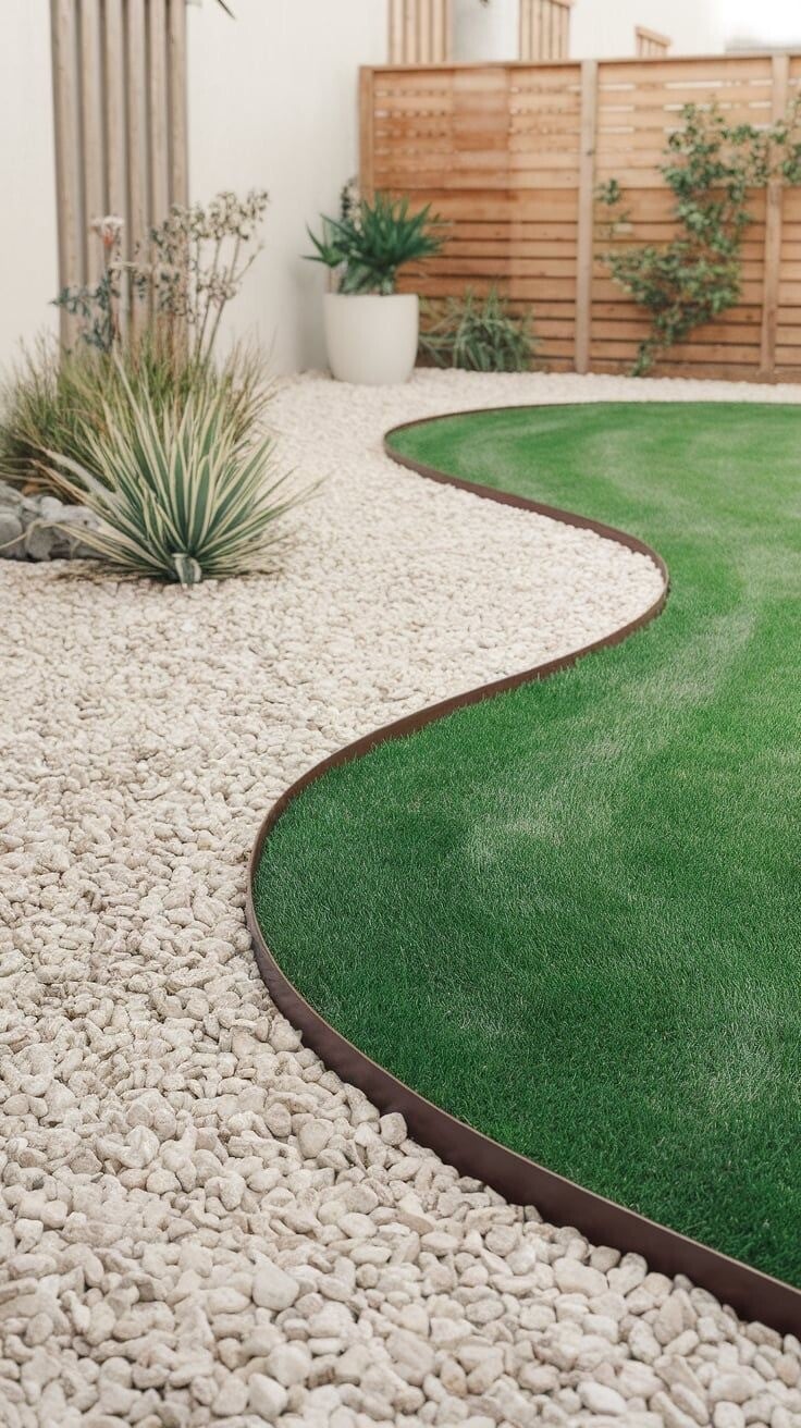 Steel edging expertly defines distinct spaces, prevents grass encroachment, secures rock and mulch, and gives your entire yard an organized, sophisticated feel. From simple borders to intricate custom designs, our edging provides crucial structure and an intentional, professionally finished aesthetic to any landscape.